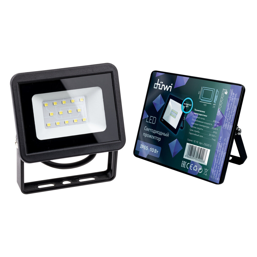 Прожектор светодиодный Duwi eco (6500K) 25020 3, 10 Вт, свет: холодный белый информация: