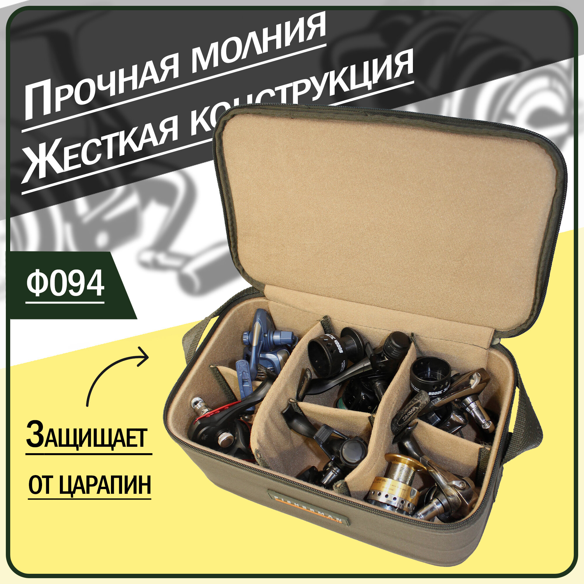 Отзывы на Жесткий кофр для катушек и рыболовной оснастки Fisherman Ф094 (33,5х13х19, на 6 катушек, хаки)