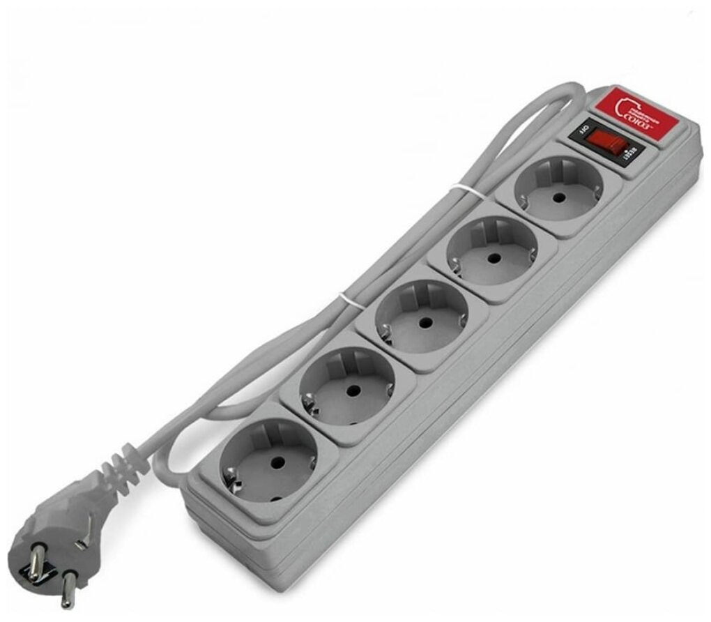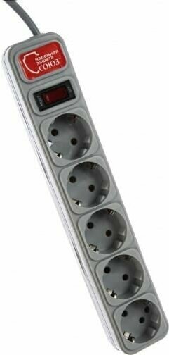 Сетевой фильтр "СОЮЗ", выключатель с индикацией, с заземлением, цвет: серый, ПВС 3 х 0,75, 5 гнезд, 1,5 м