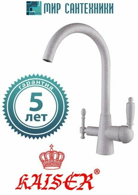 Смеситель для кухни с краном под фильтр KAISER 31744-4 песочный мрамор