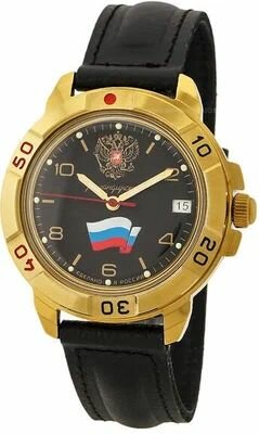 Мужские наручные часы Восток Командирские 53925Б-classic, натуральная кожа, черный