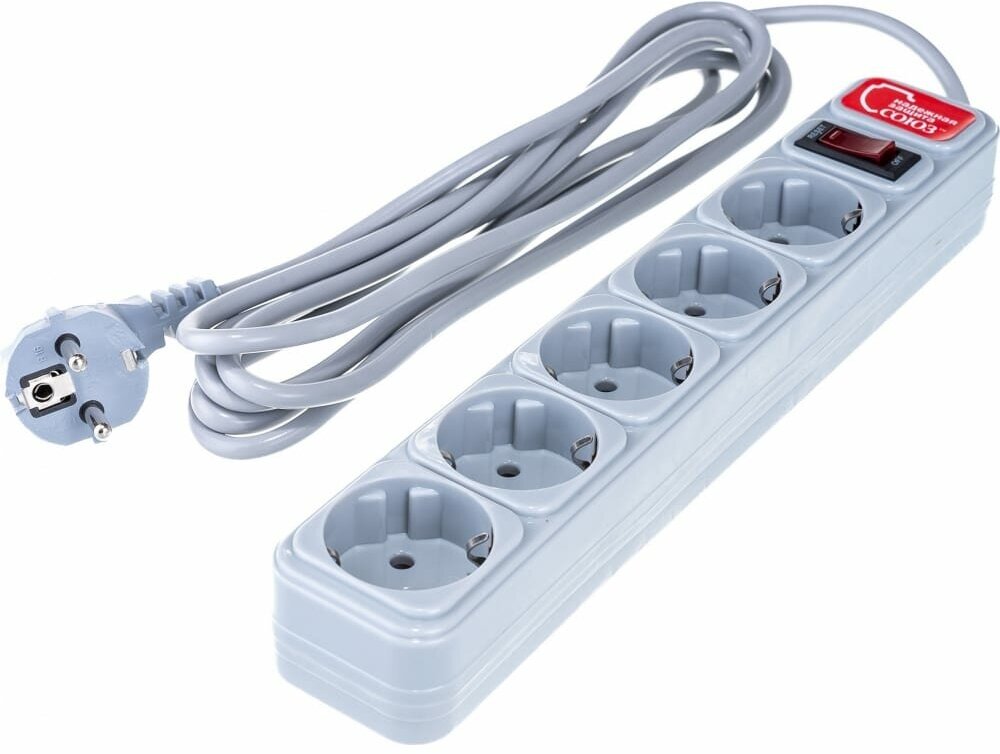 Удлинители, блоки розеток, разветвители, переходники Союз Удлинитель с сетевым фильтром 5х3м 10А IP21 ПВС 3х0.75 сер. 709 ₽