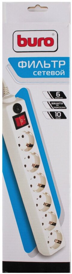 Сетевой фильтр BURO 6 розеток 5 метров (600SH-5-W) информация: