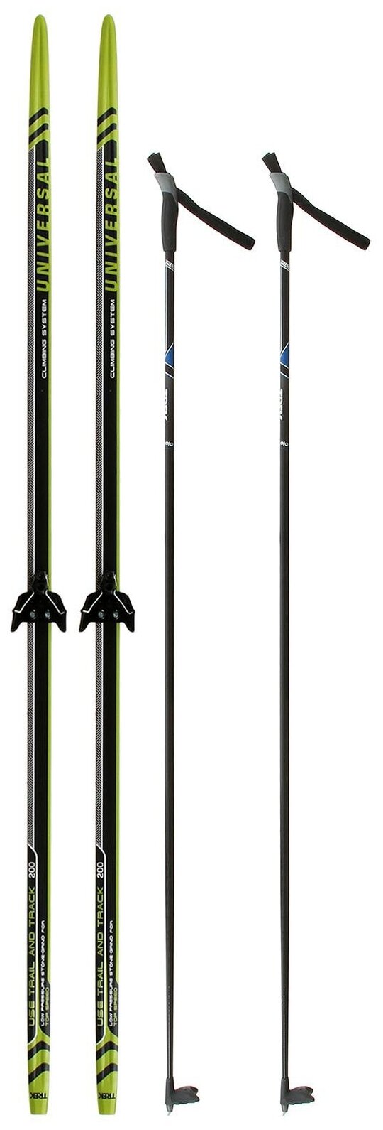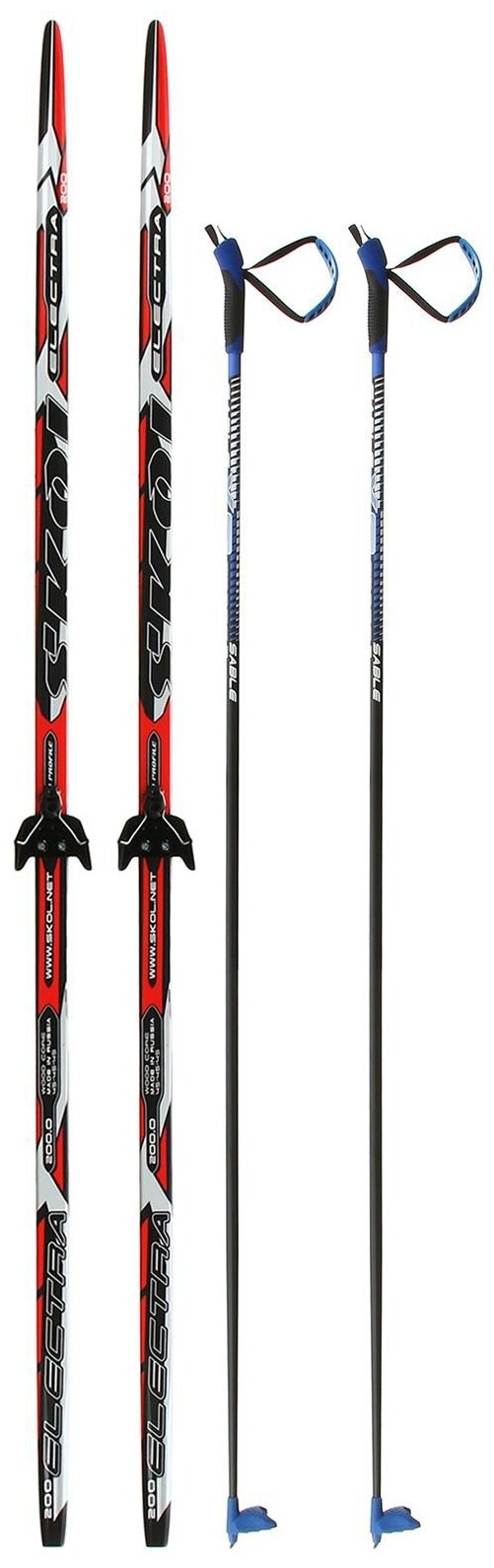 Комплект лыжный: пластиковые лыжи 190 см с насечкой, стеклопластиковые палки 150 см, крепления NN75 .