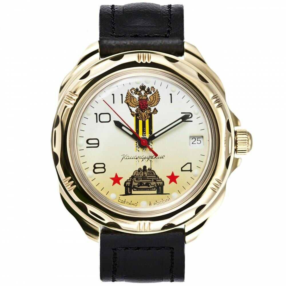 Мужские наручные часы Восток Командирские 53925Б-classic, натуральная кожа, черный