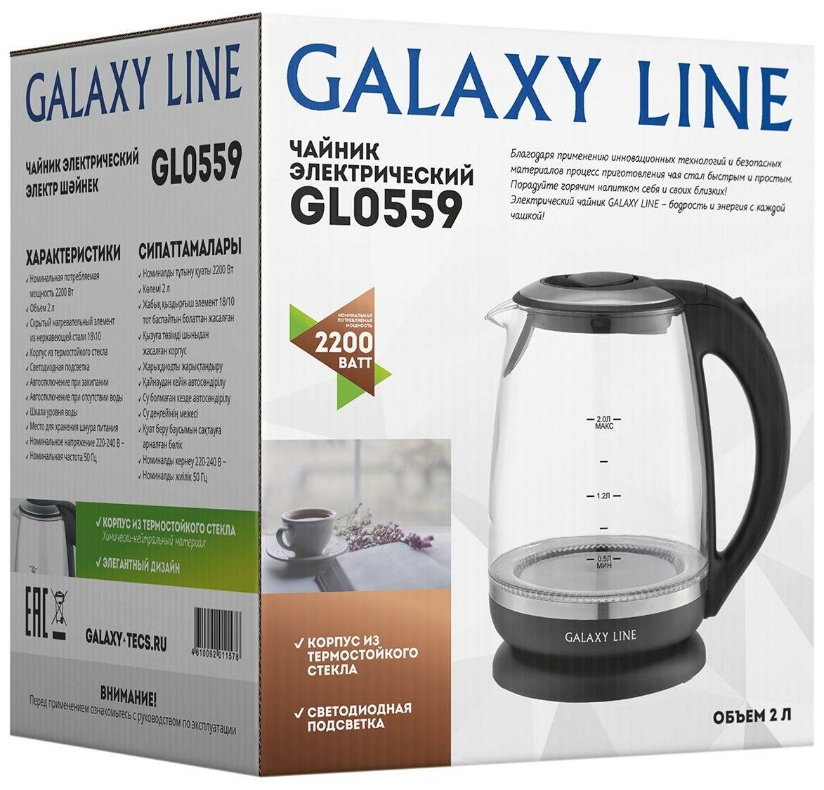 Чайник Galaxy LINE GL0559, стекло/черный 1 725 ₽