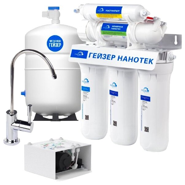 Фильтр для воды обратный осмос Гейзер Нанотек П нанофильтрация с помпой и баком 12 литров