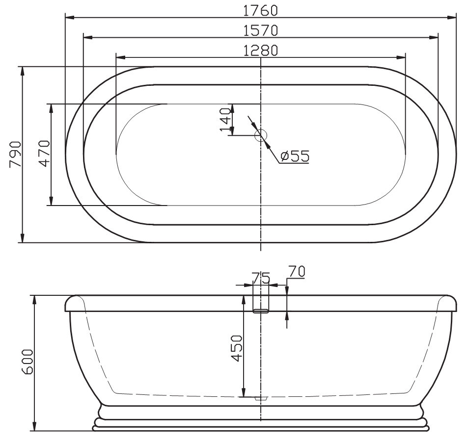 Ванна Ceruttispa COMO150 акриловая (1500x750x560) отдельностоящая, белая