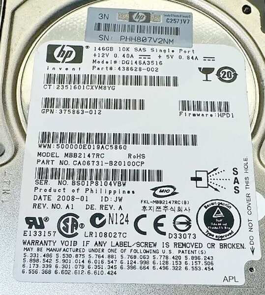 Жесткий диск HP 438628-002 146Gb 10000 SAS 2,5" HDD информация: