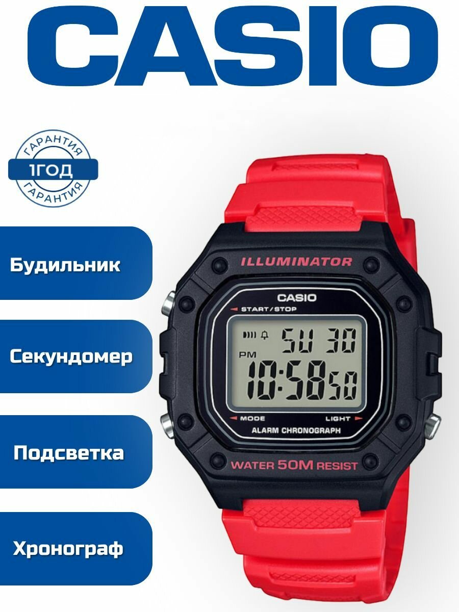 Наручные часы CASIO W-218HC-8A кварцевые мужские,женские подсветка дисплея WR50 (5 атм) 2 981 ₽