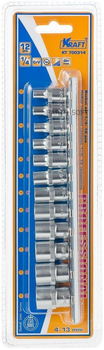 Набор головок торцевых шестигранных (12 шт; 1/4" Dr; 4-13 мм) KRAFT KT 700314 информация:
