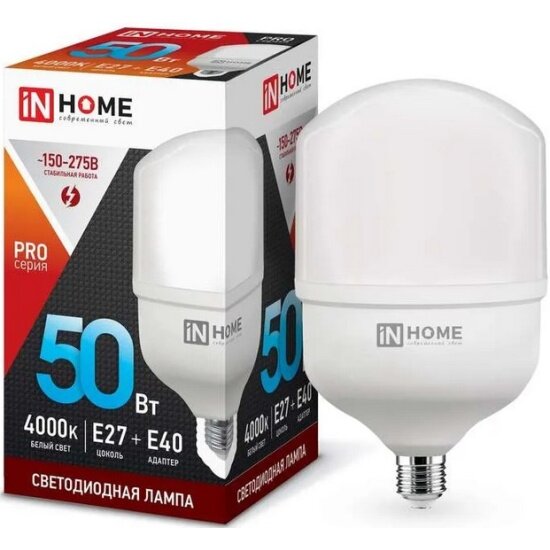 Отзывы на Светодиодная лампа IN Home LED-HP-PRO 50Вт 4000К нейтр. бел. E27 4750лм 230В с адаптером E40 4690612031118