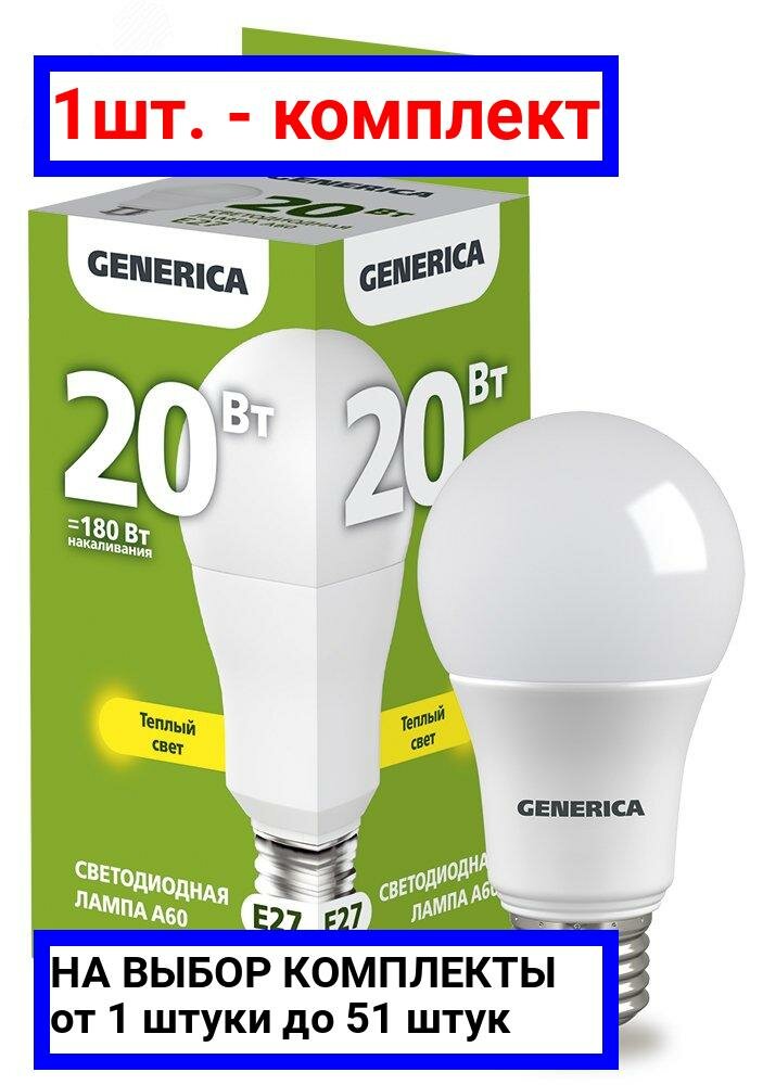 10 цен на Лампа светодиодная GENERICA A60, 20 Вт, груша, 3000 К, E27, 230 В, LL-A60-20-230-30-E27-G