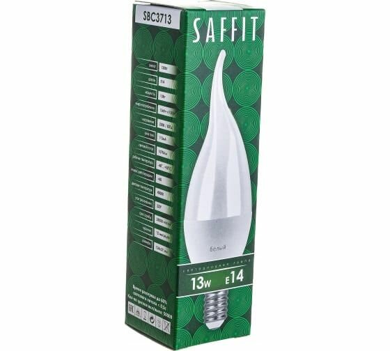 Отзывы на Светодиодная лампа SAFFIT SBC3713 Свеча на ветру E14 13W 6400K 55175
