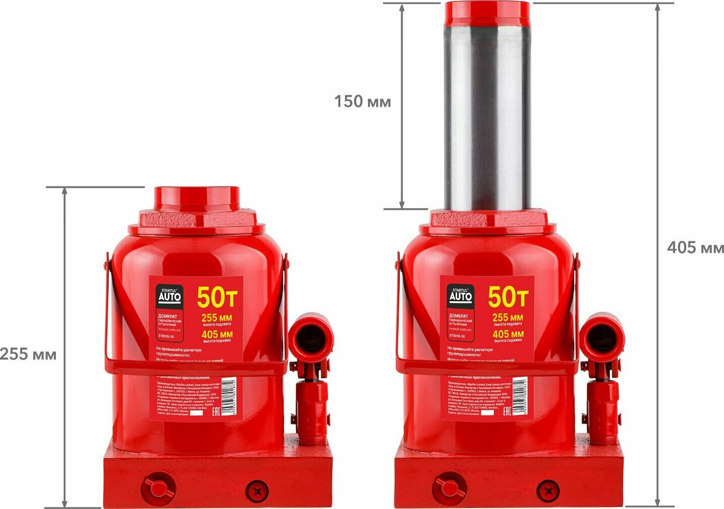 Домкрат гидравлический 50т бутылочный 255-405мм STARTUL AUTO (ST8018-50) (h min 255мм, h max 405мм)