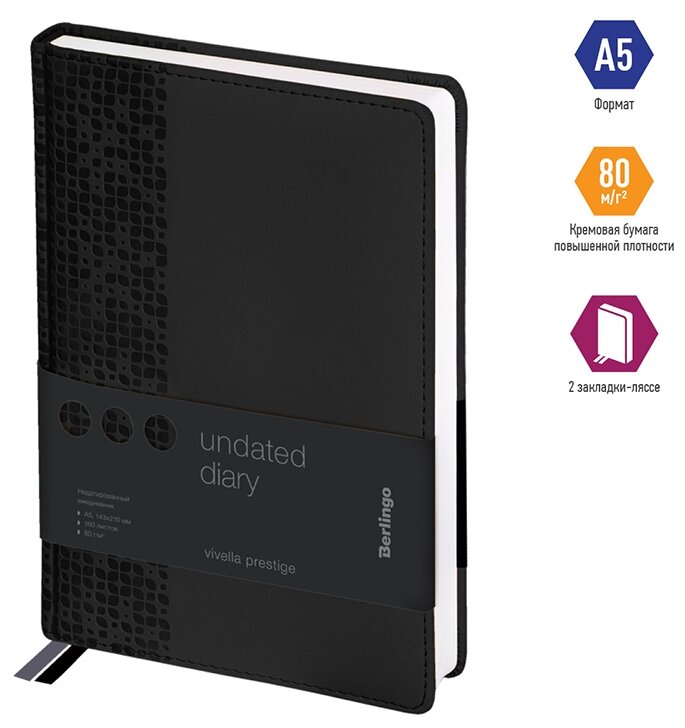 Ежедневник недатированный, A5, 160л., кожзам, Berlingo "Vivella Prestige", черный, 1 шт информация: