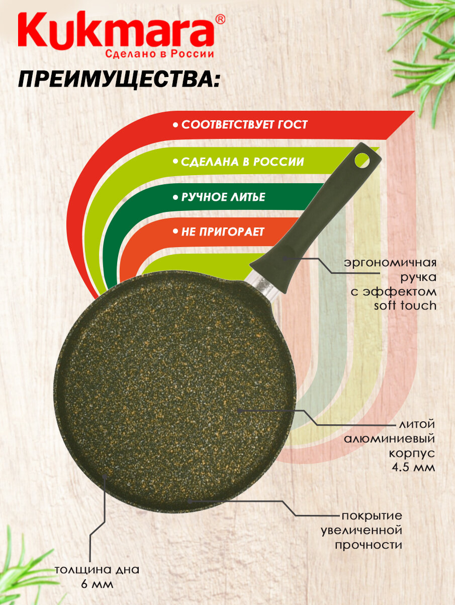 Сковорода блинная KUKMARA Trendy style Malachite 22см с ручкой информация: