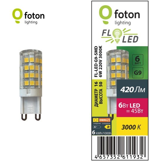 Светодиодная лампа Foton Lighting FL-LED G9-SMD 6W 220V 3000К G9 420lm 16*50mm информация: