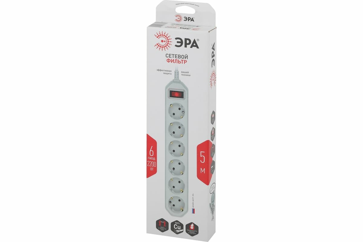 Usf-6Es-5M-W-Box Сетевой Фильтр Базовая Защита, С/З, С Выкл, 6Гн, 5М, Пвс, 10А, Белый_пл ЭРА арт. Б0037264
