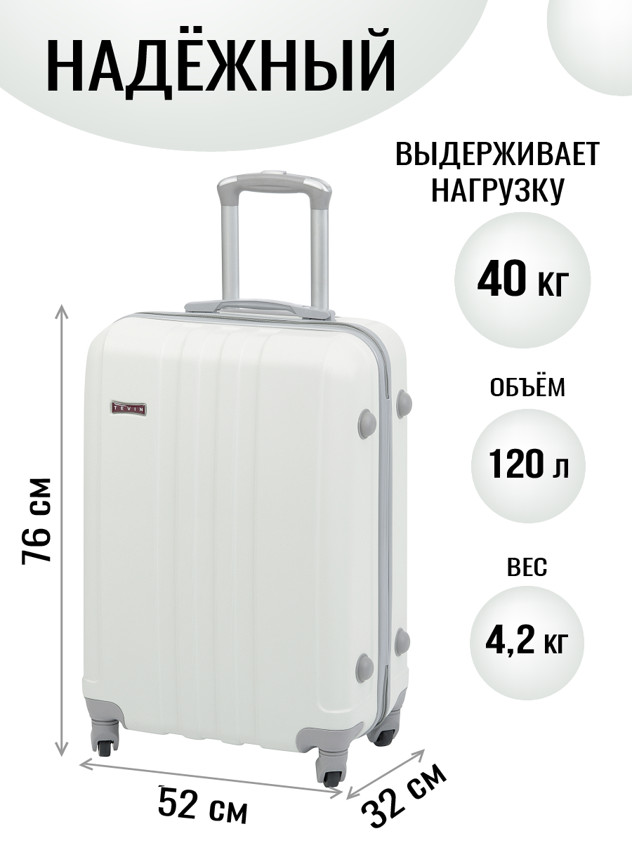 10 цен на Чемодан на колесах дорожный большой, семейный багаж для путешествий женский l+ TEVIN размер Л+ 76 см xl 120 л xxl легкий, прочный abs пластик Белый
