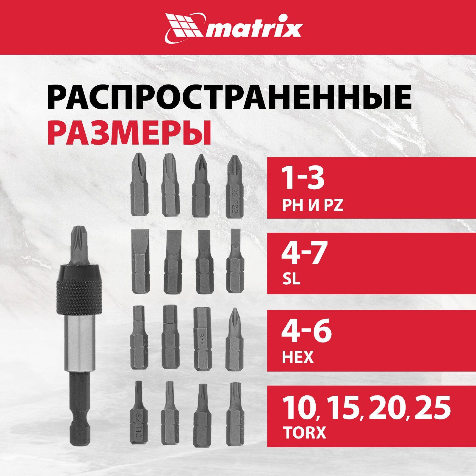 10 цен на Набор бит Matrix адаптер для бит, сталь S2, 18 предметов, в боксе 11316