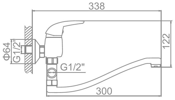 Смеситель на раковину настенный Эверест B46-350 с круглым поворотным изливом, кран-буксы 1/2", хром