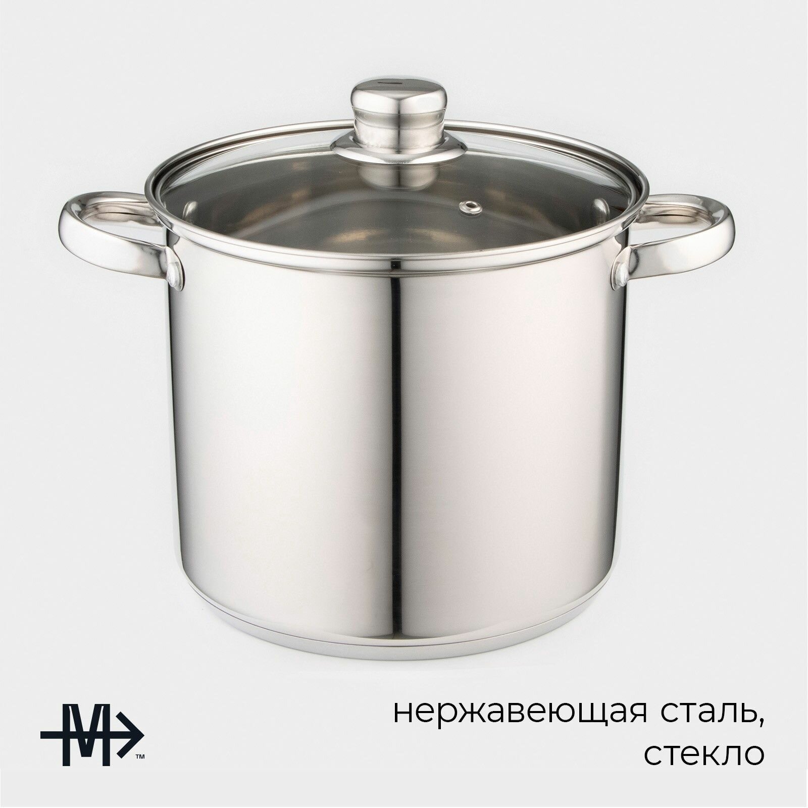 Magistro Кастрюля из нержавеющей стали Magistro Grande, 7,1 л, металлическая крышка, капсульное дно, индукция
