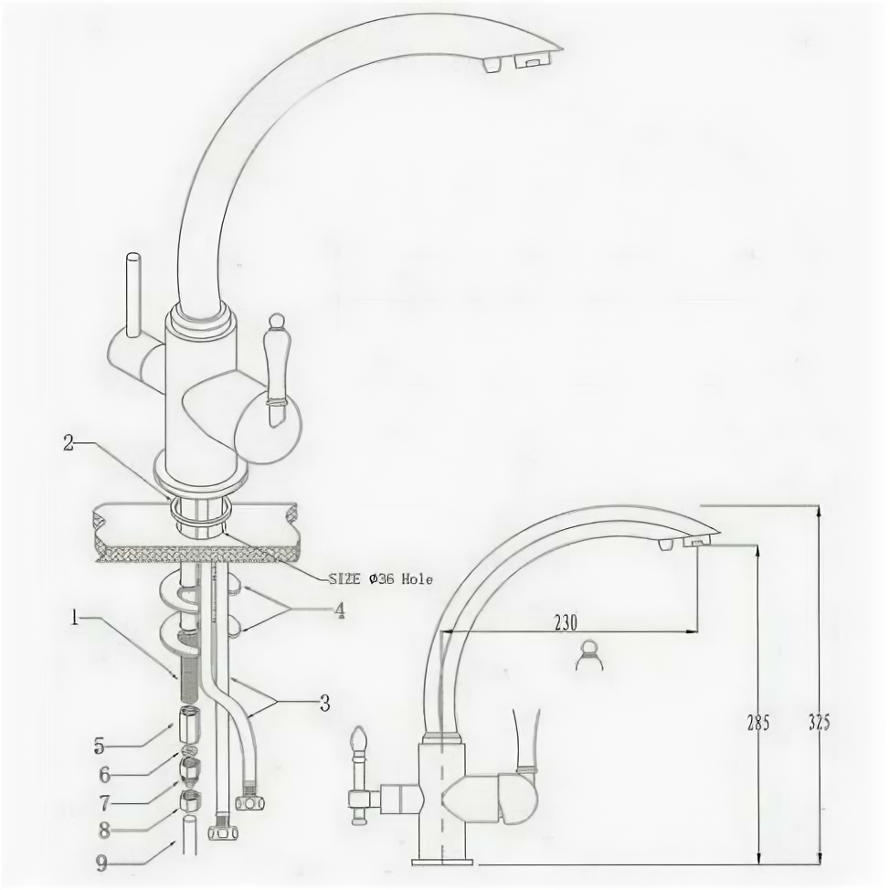 | Высота излива | 285 мм |
