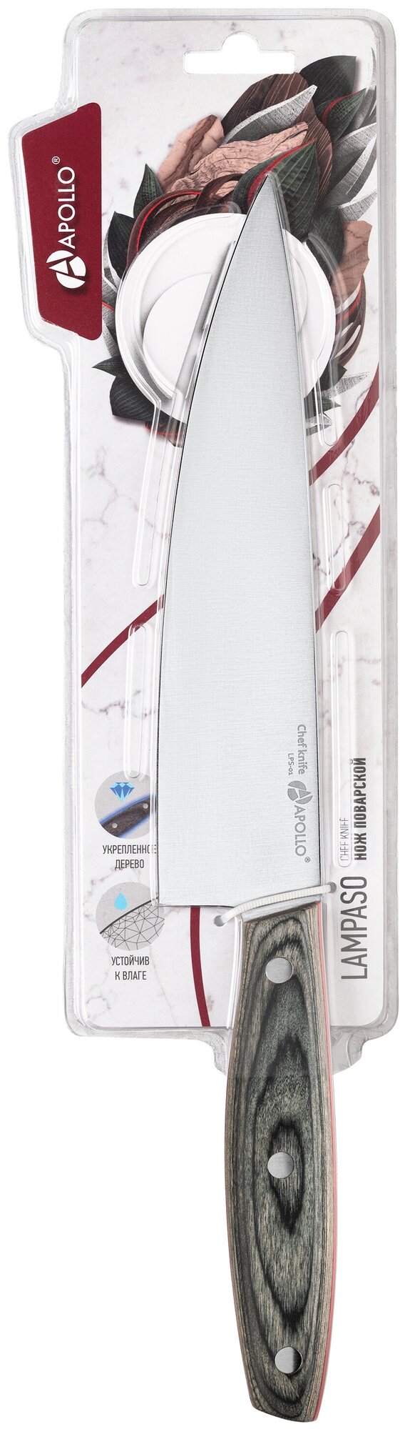 Нож кухонный поварской для измельчения овощей и мяса, из нержавеющей стали с деревянной ручкой APOLLO "Lampaso", длина лезвия 19 см информация: