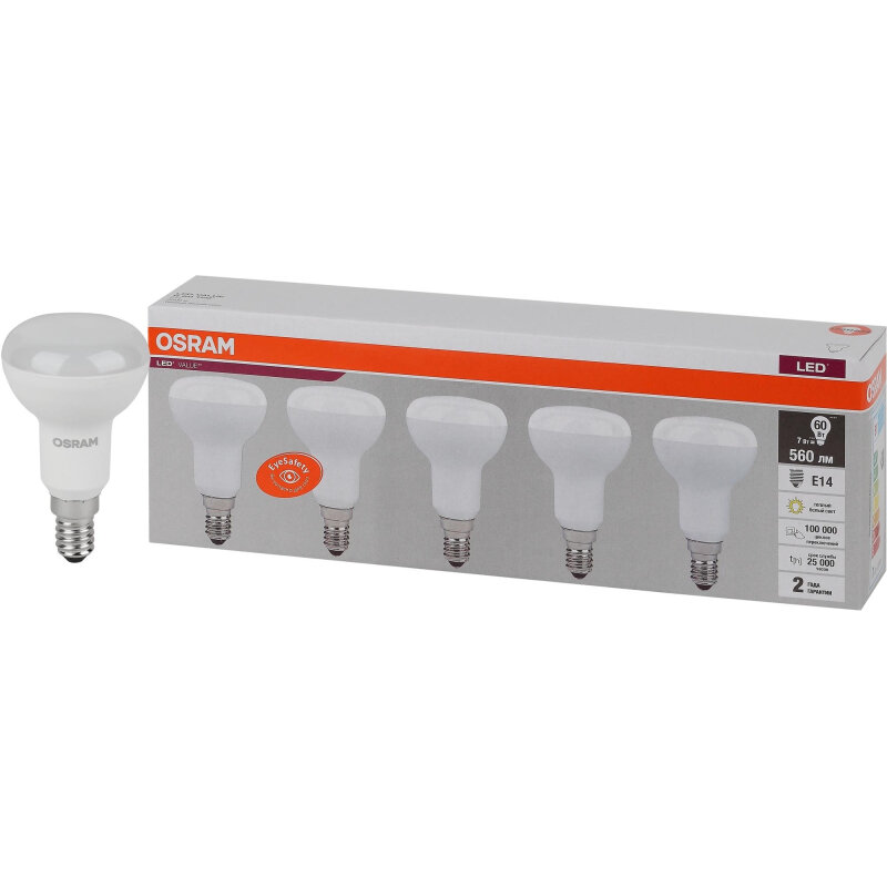 Лампа Светодиодная OSRAM Экопак Рефлектор Гриб E14 7Вт 220В 3000К свет Теплый белый (5шт/уп), упаковка 1шт