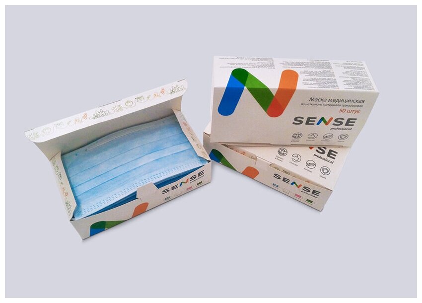 Маска медицинская SENSE Professional одноразовая трехслойная