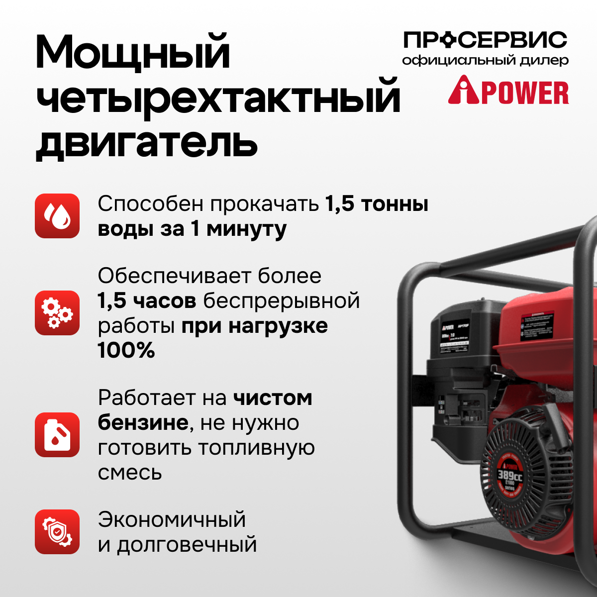 Мотопомпа бензиновая A-iPower AWP100 для чистой воды (9561 Вт, 1517 л/мин, высота подъема 31 м,39 кг) информация: