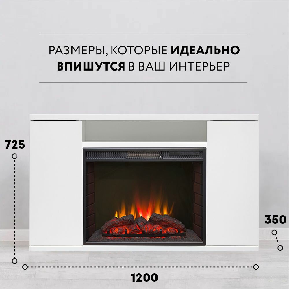 Электрокамин RealFlame BROOKLYN 25.5 WT с очагом SPARTA 25.5 LED, имитация пламени и звука потрескивания дров