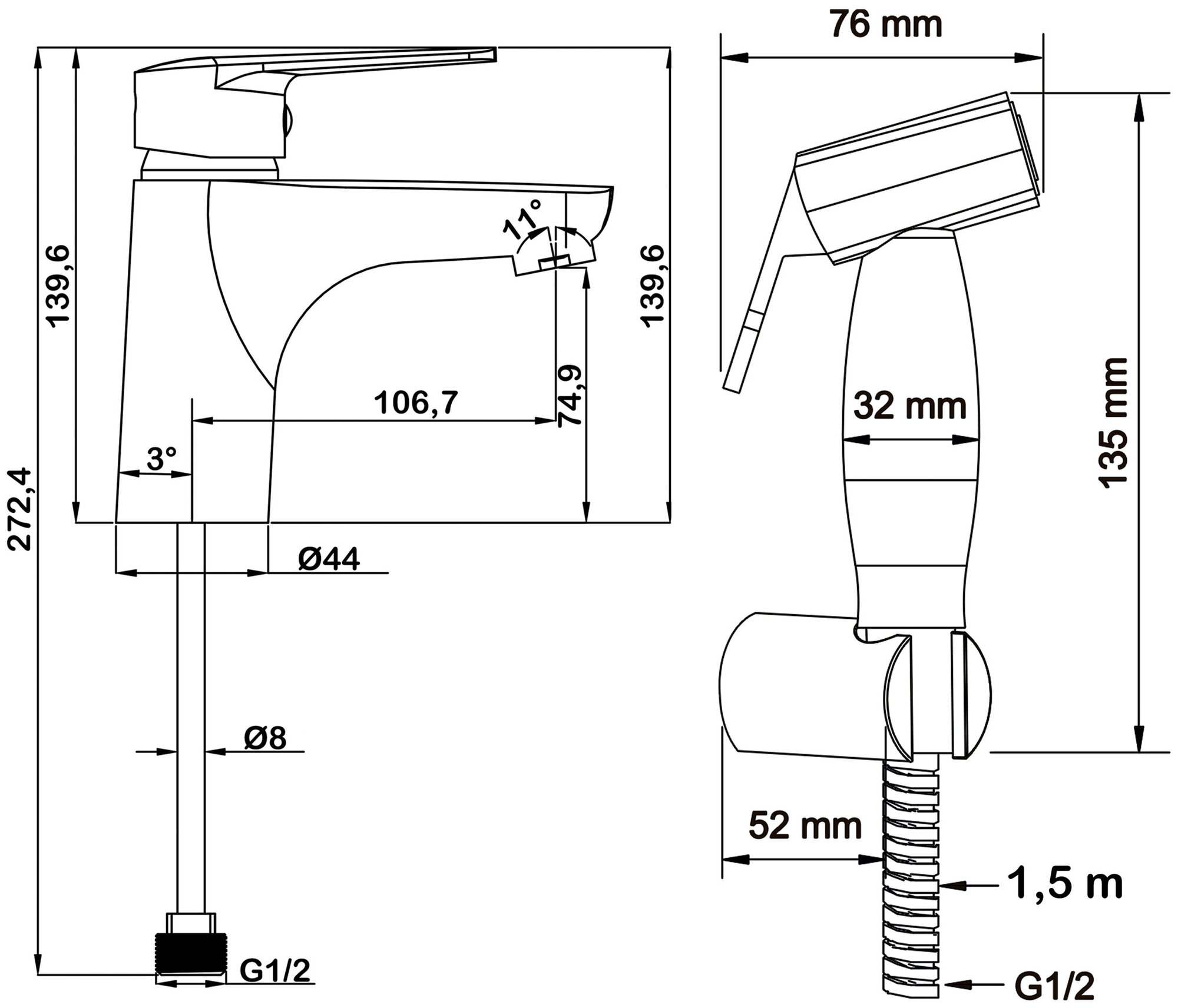 Swedbe Mars смеситель для раковины, однорычажный с гиг. Душем 1760B