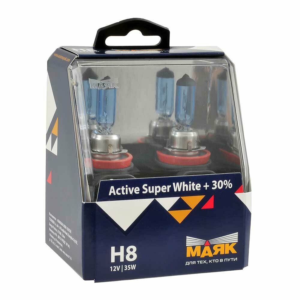 Лампа автомобильная галогеновая H8 Маяк Active Super White + 30% 12V 35W PGJ19-1 (2 шт.) 72820ASW+30