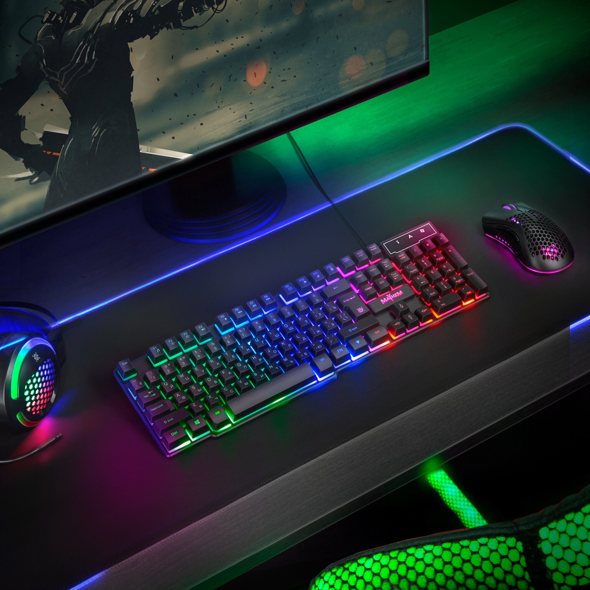 Игровая клавиатура Defender Mayhem Gk-360dl RU, RGB подсветка,19 Anti-Ghost .