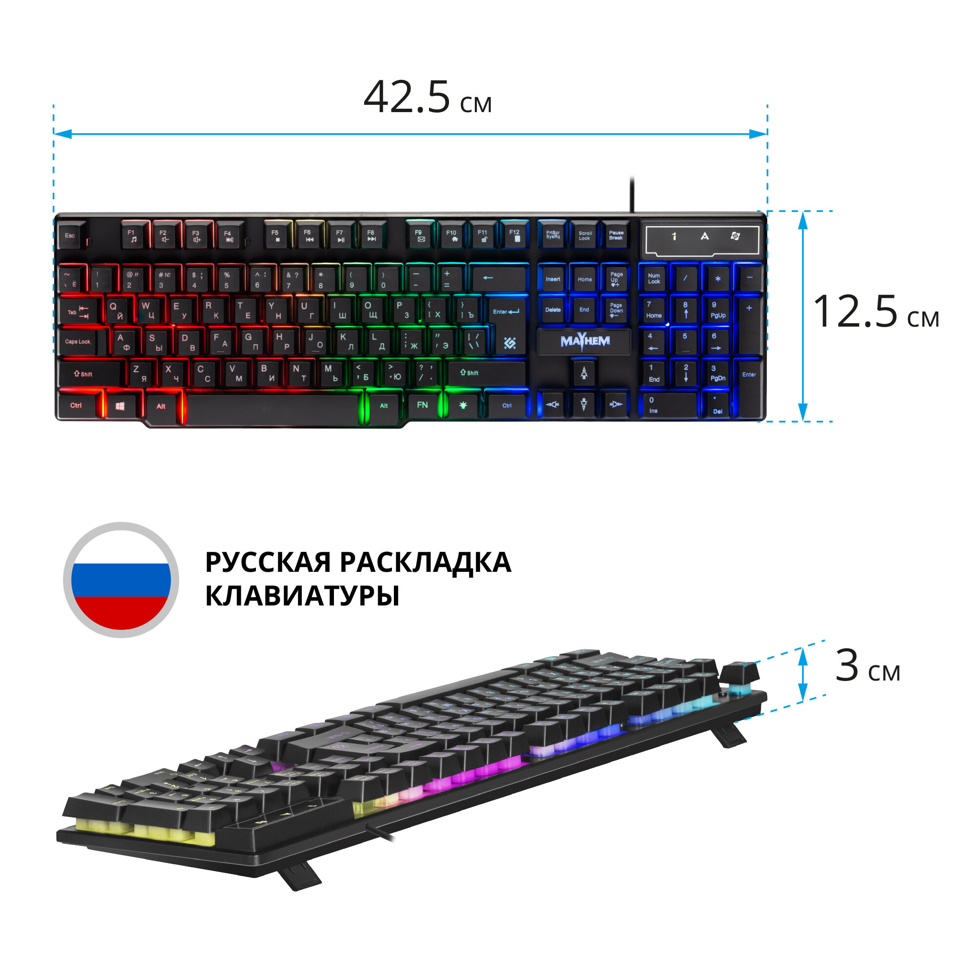 Игровая клавиатура для компьютера Defender Mayhem мембранная RGB (Full-size) информация: