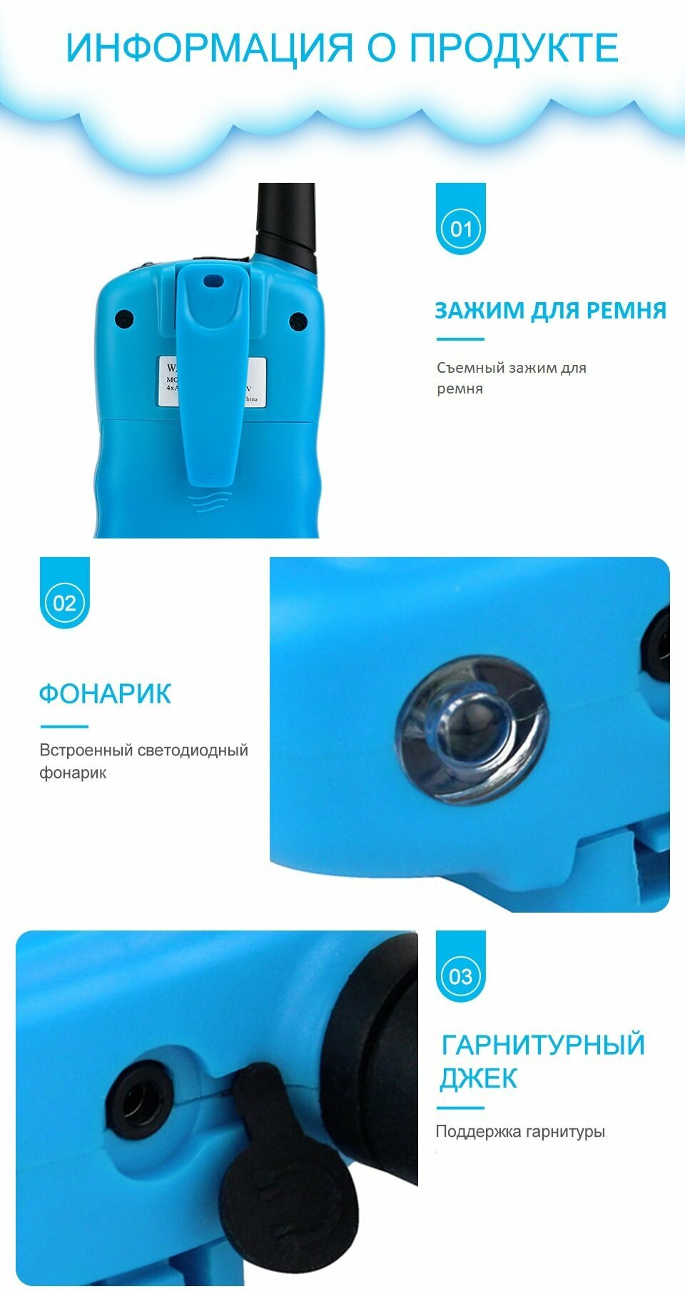 Комплект раций Retevis (Ретевис) RT388 / T-388, рация для детей, комплект 2 штуки, цвет голубой