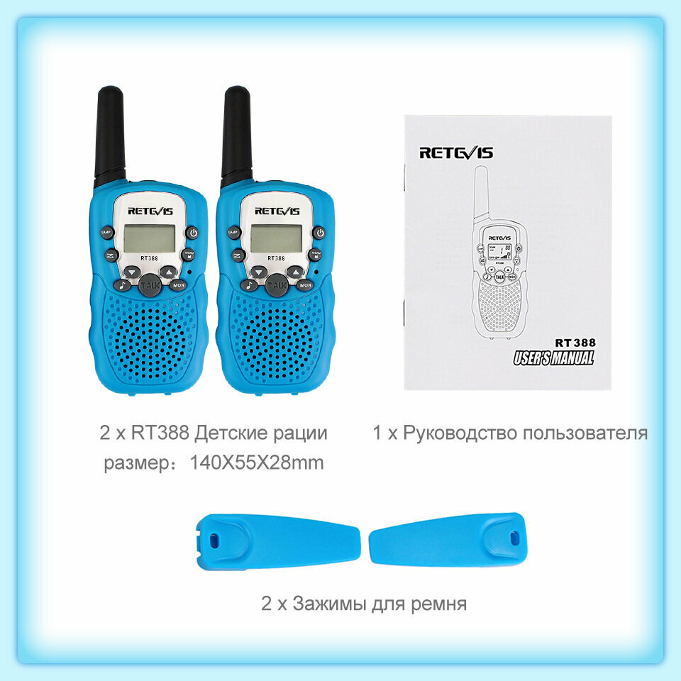 Комплект раций Retevis (Ретевис) RT388 / T-388, рация для детей, комплект 2 штуки, цвет синий