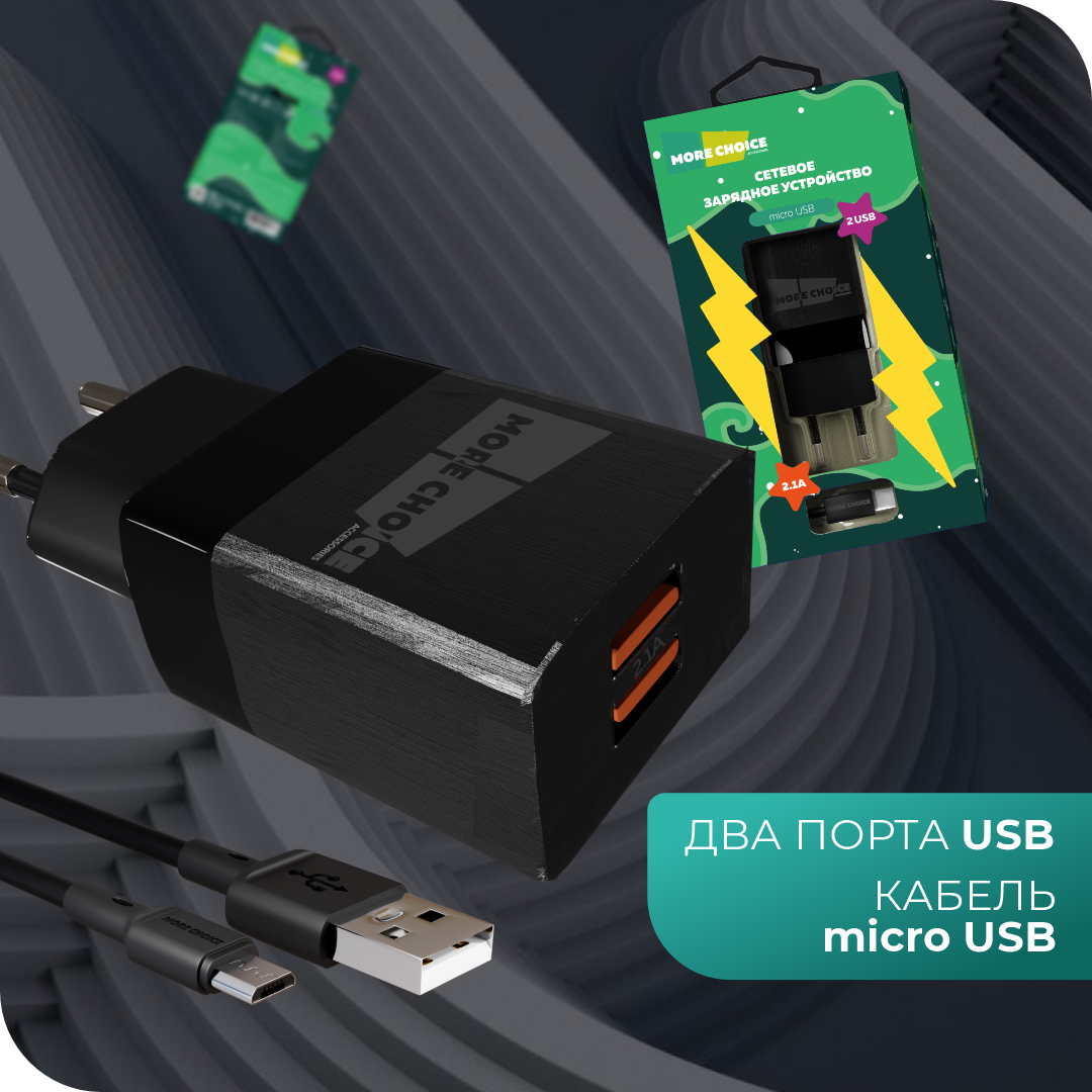 Сетевое зарядное устройство More Choice 2USB 2.1A для micro USB NC24m Black 516 ₽