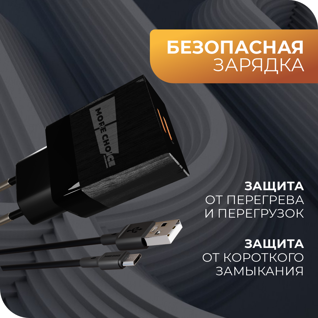 Сетевое зарядное устройство More choice NC24m, 2.1А, кабель micro USB, черный