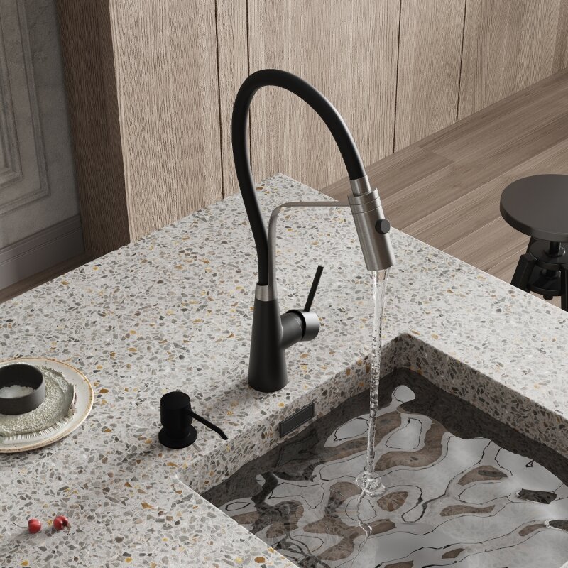 Смеситель для кухни с гибким изливом WasserKRAFT A8417 из нержавеющей стали с покрытием MagicBlack информация:
