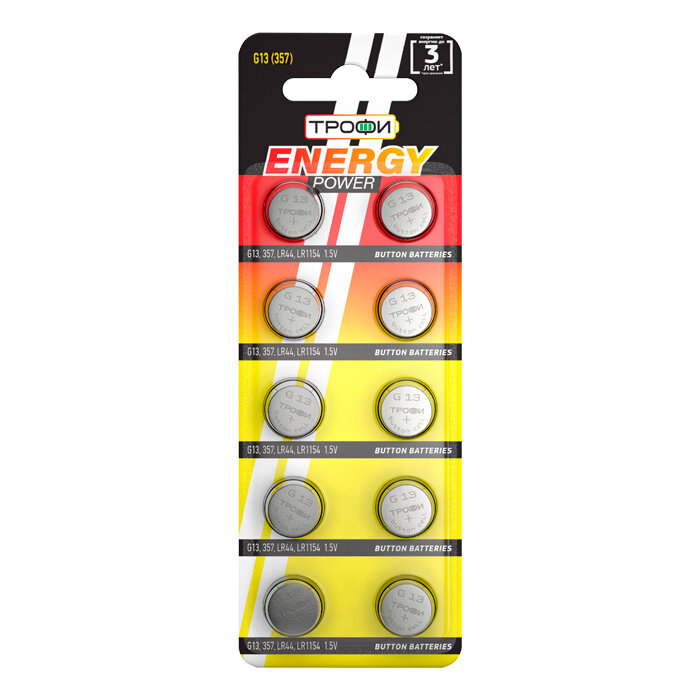 10 цен на Элемент питания алкалиновый "таблетка" LR44/G13/LR1154/357 (блист.10шт) C0034935 Трофи