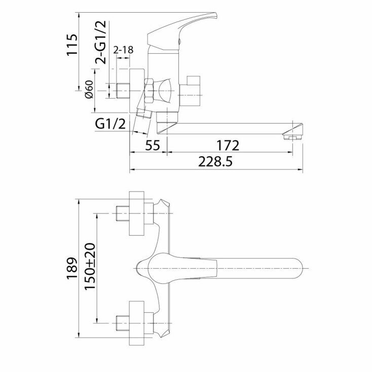 Смеситель для ванны и умывальника 35к Milardo STESB02M02 "Sterm" излив 172мм хром