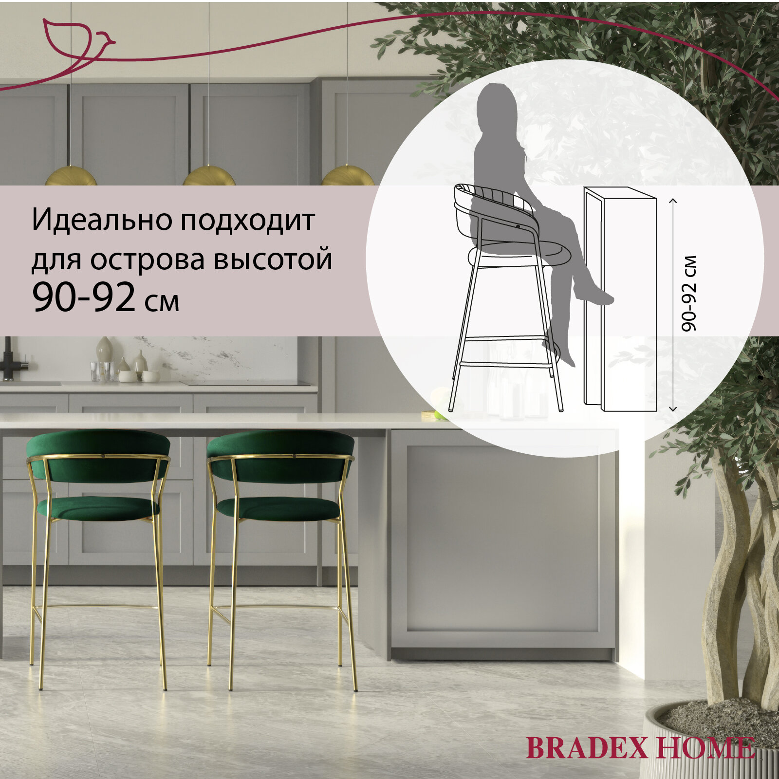 Стул полубарный Bradex Turin зеленый с золотыми ножками (FR 0908) 24 630 ₽