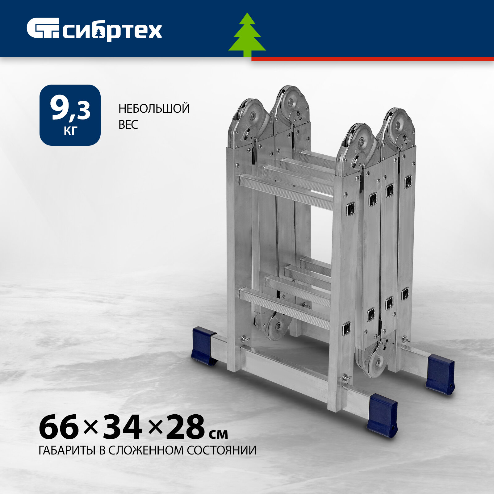 Лестница шарнирная алюминиевая, 4 х 2 ступени, Россия, Сибртех