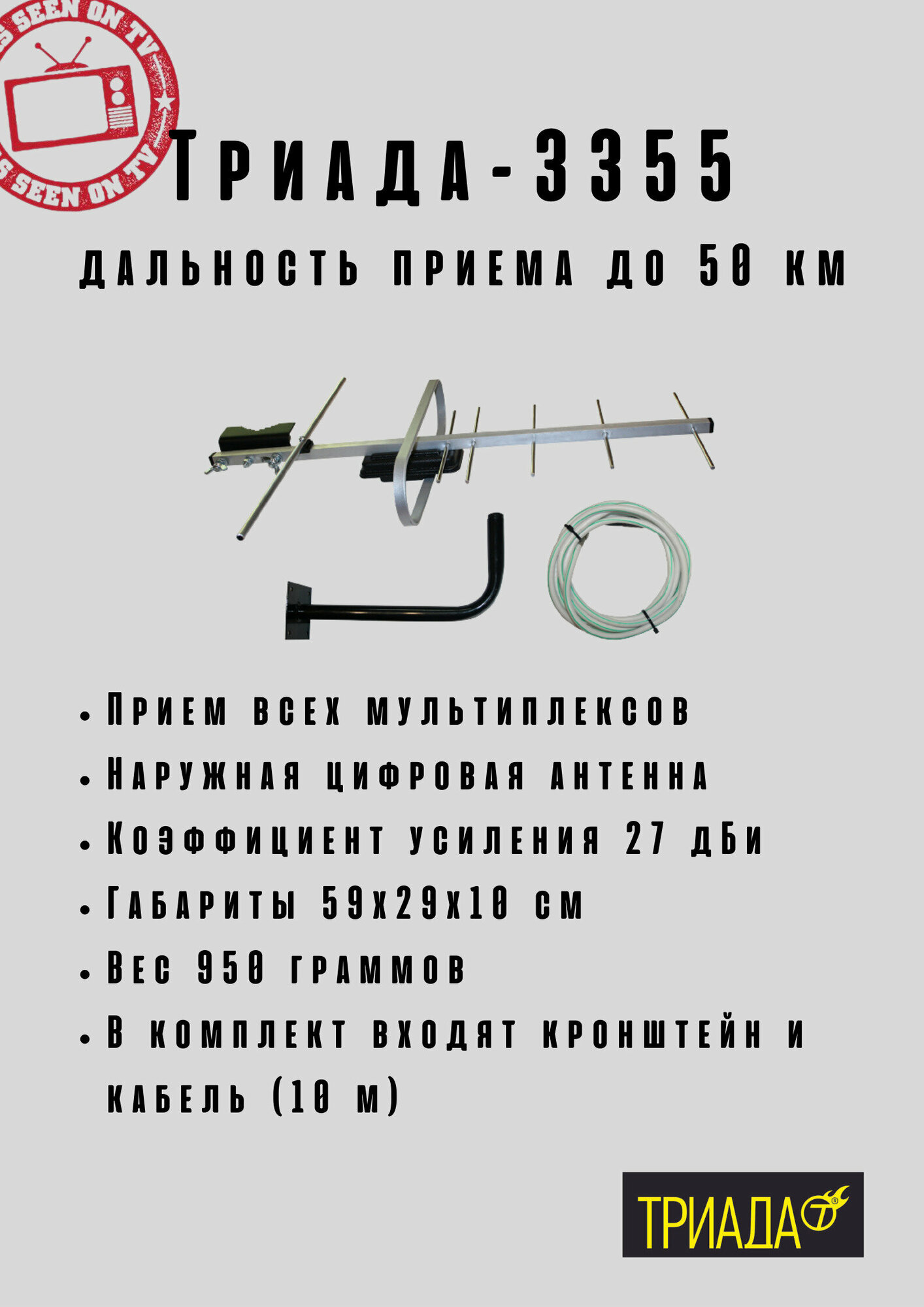 Отзывы на Уличная антенна для телевизора Триада-3355 активная цифровая, до 50 км, с кабелем кронштейном