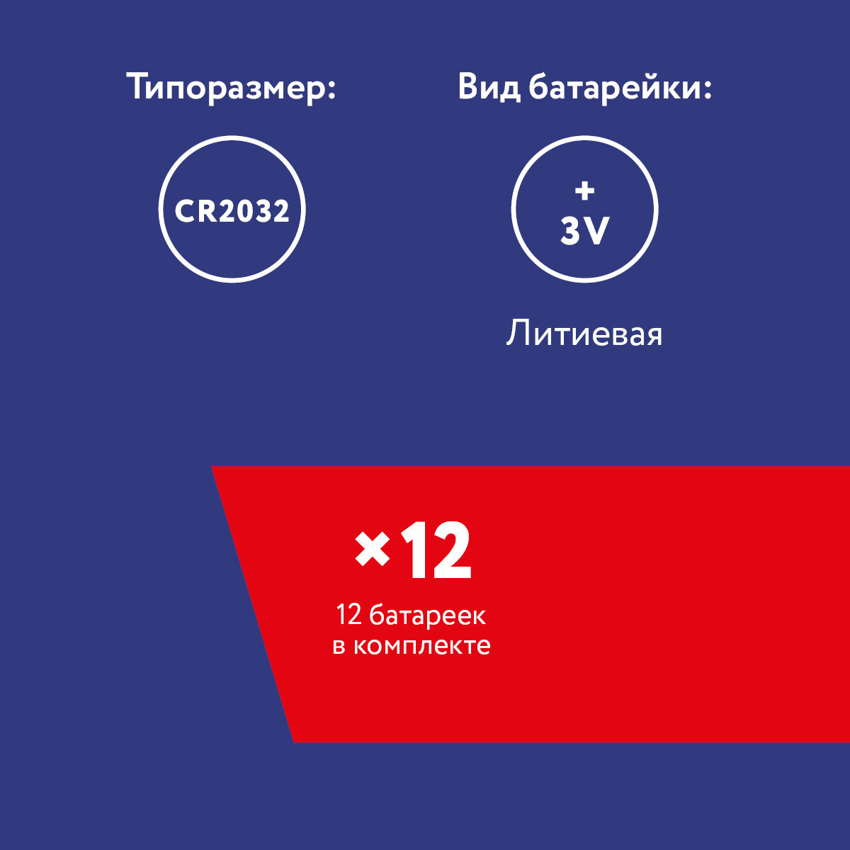 Батарейки CR2032 таблетки 12 штук литиевые 3V Eleven / Батарейка для часов, весов, калькулятора информация: