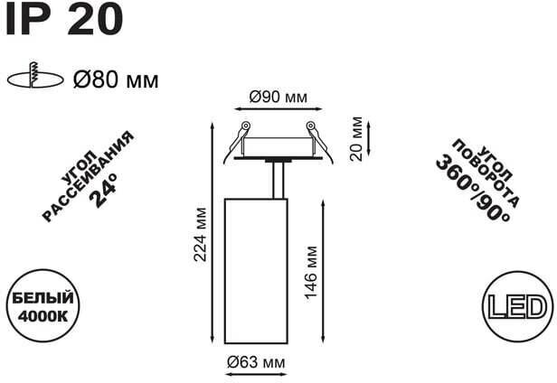 Встраиваемый светильник Novotech Selene 357548 LED 15 Вт информация: