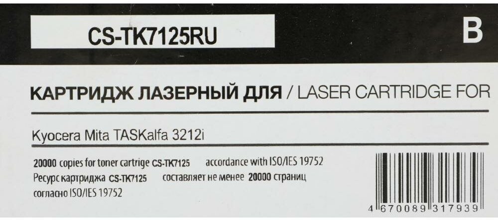 Отзывы на Тонер-картридж Cactus TK-7125 черный (20000стр.) для Kyocera TASKalfa 3212i